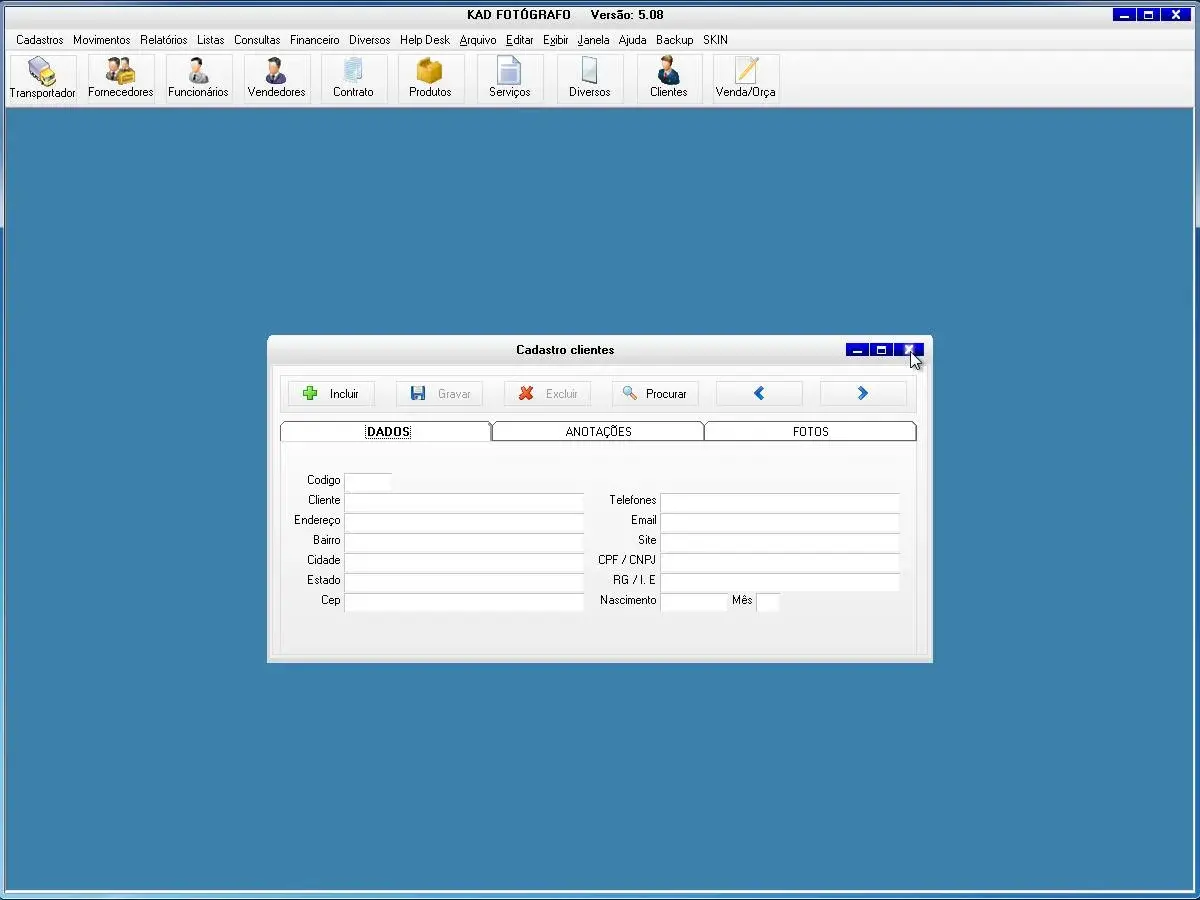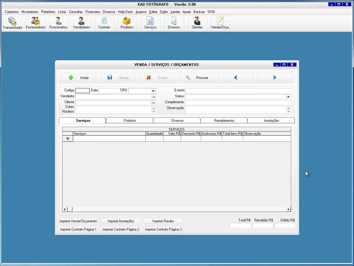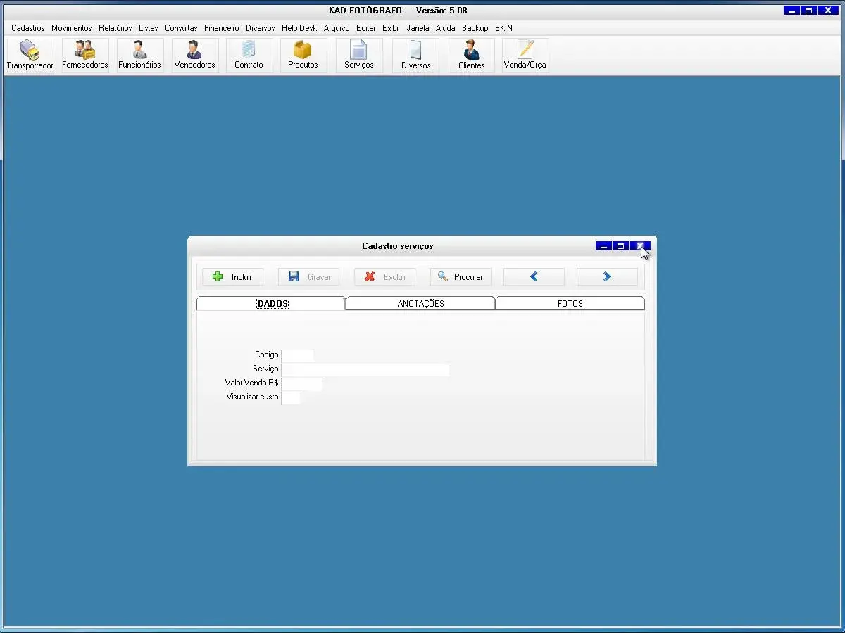 O Kad Fotógrafo é um programa para gerenciamento de serviços fotográficos muito fácil de usar, permitindo cadastrar vendas, serviços e orçamentos