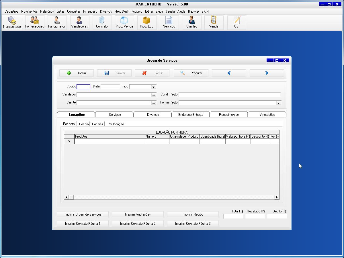 O programa para locação de caçambas é fácil de usar e possui uma interface simples e objetiva, gere e imprima ordens de serviços de locação com apenas alguns cliques