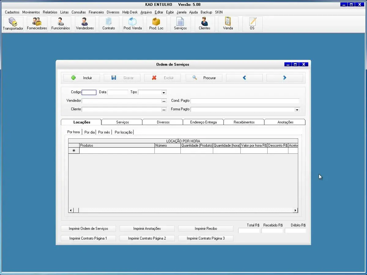 O programa para locação de caçambas é fácil de usar e possui uma interface simples e objetiva, gere e imprima ordens de serviços de locação com apenas alguns cliques