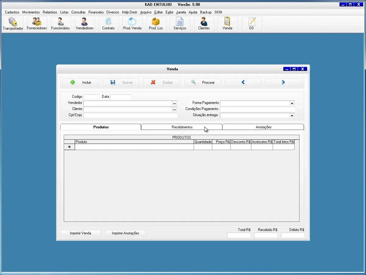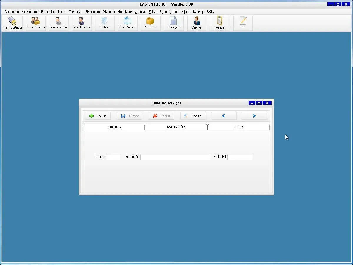 O software para locação de caçambas possui cadastro de ordem de serviços e venda
