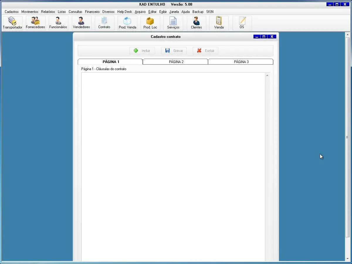 O programa para locação de caçambas possui cadastro e impressão de contrato