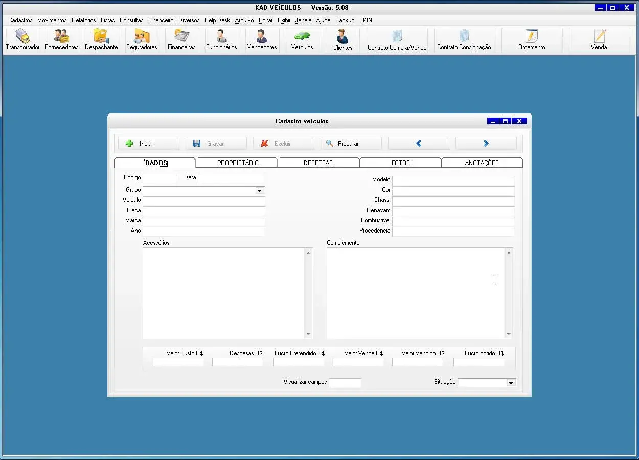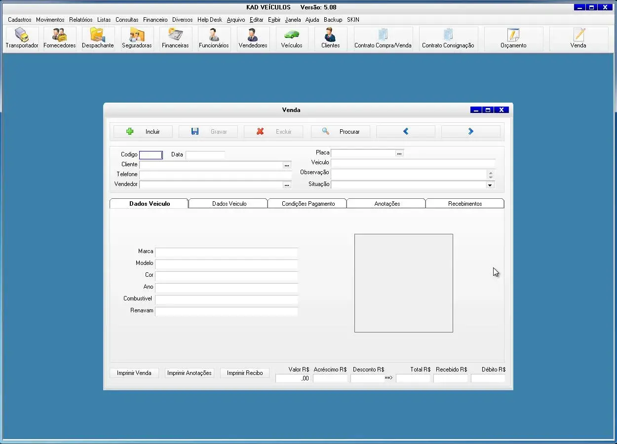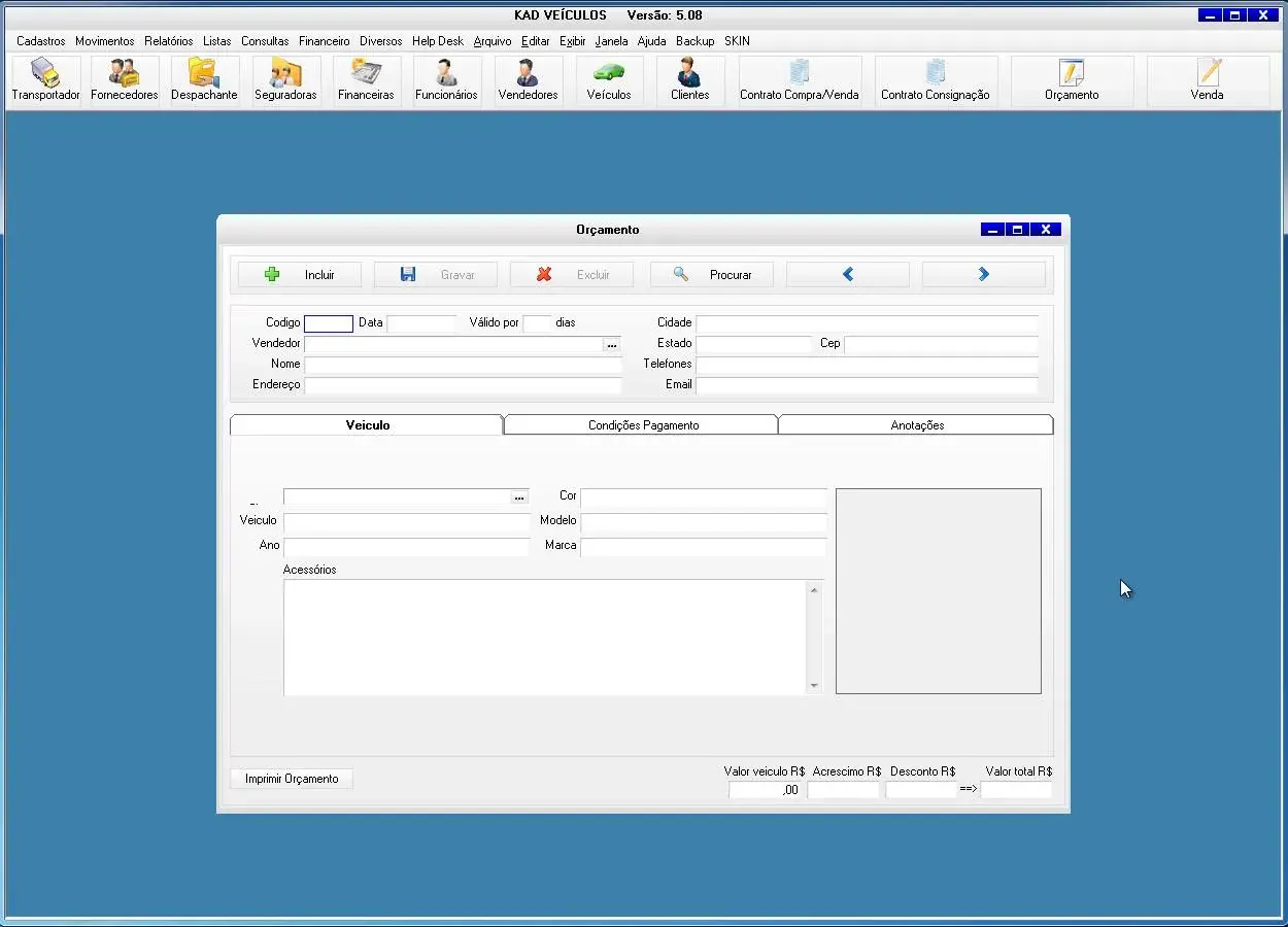 O software permite que você gerencie todos os veículos cadastrados, possibilitando informar aos clientes várias as informações referentes ao veículo