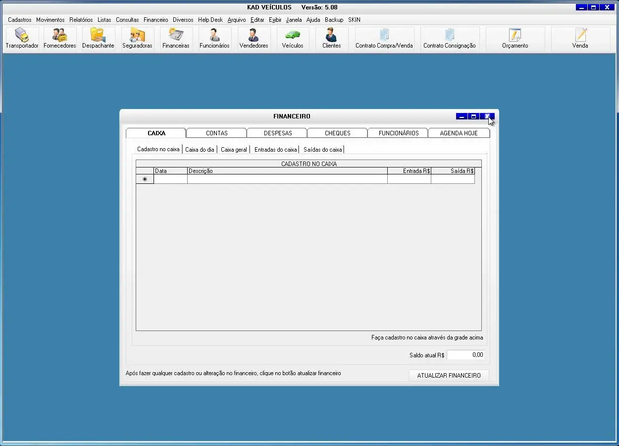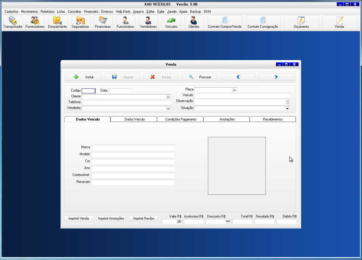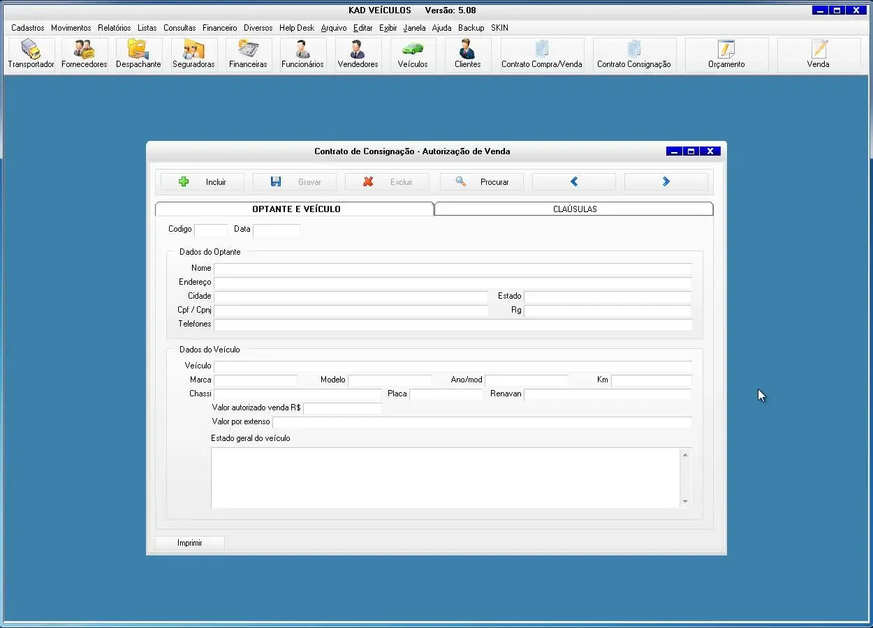 O software permite que você gerencie todos os veículos cadastrados, possibilitando informar aos clientes várias as informações referentes ao veículo