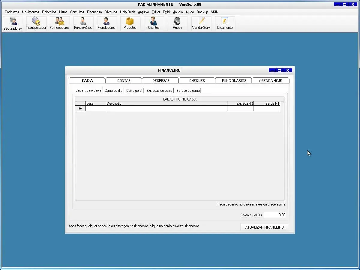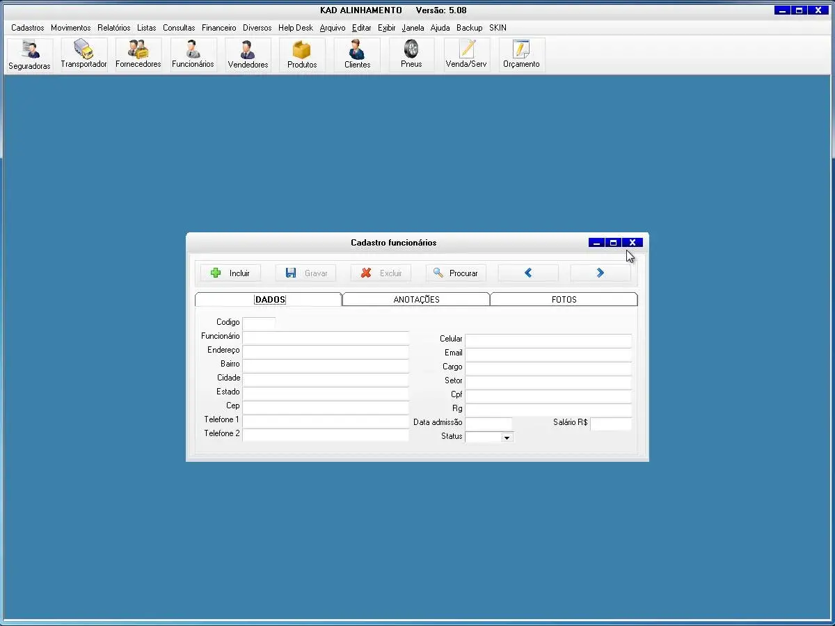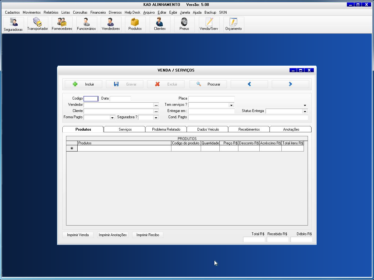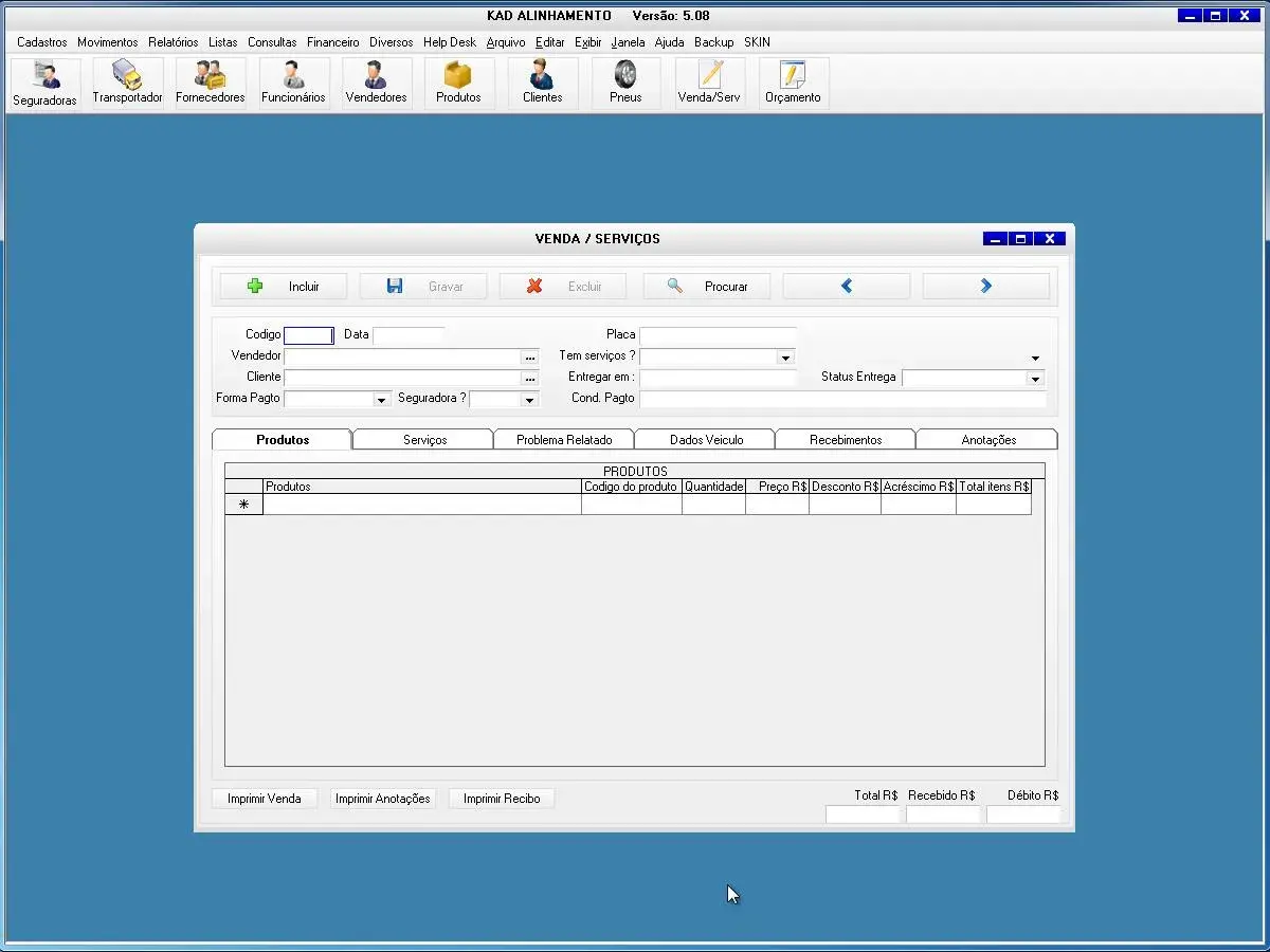 O software Kad Alinhamento foi desenvolvido para gerenciamento de oficina de alinhamento de veículos, cadastros de serviços e vendas da oficina