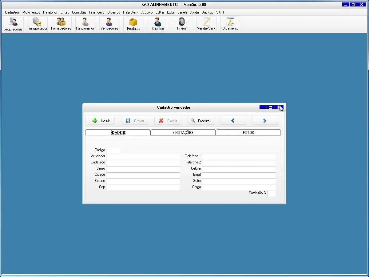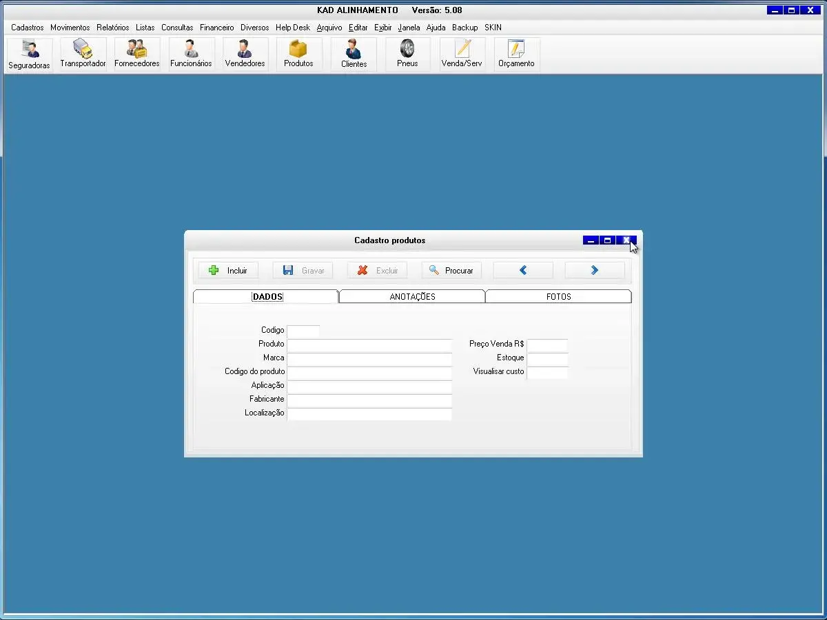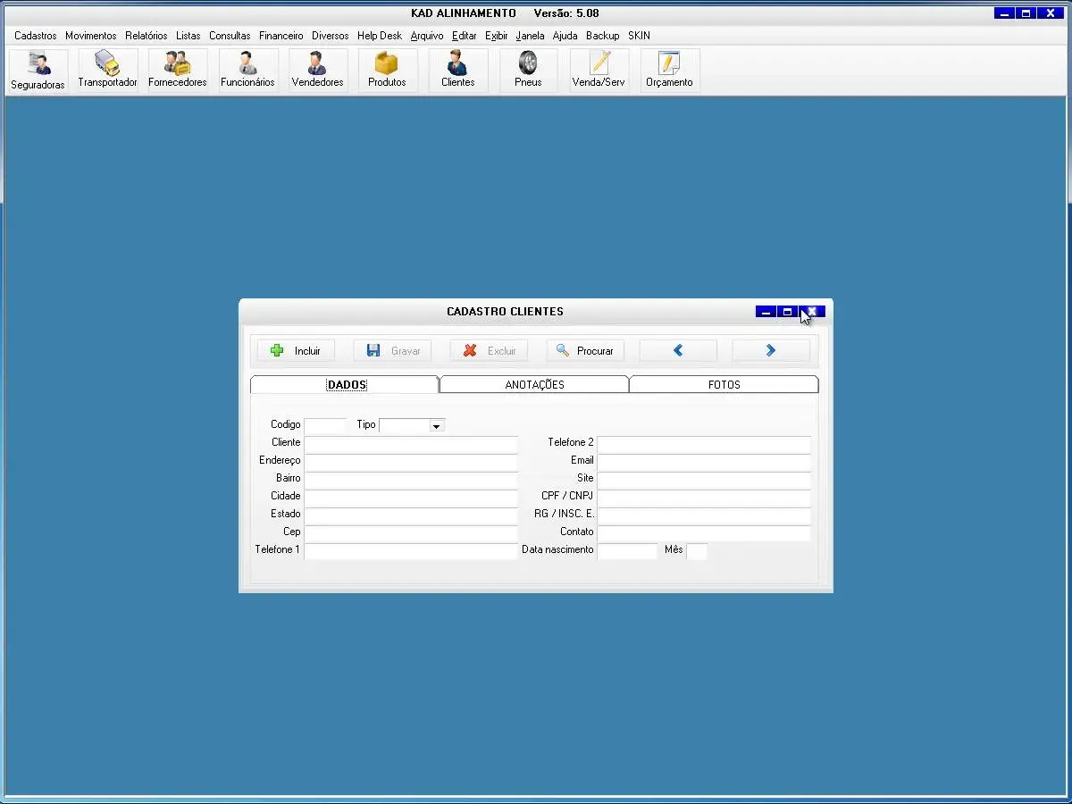 Nosso programa é prático e fácil de usar com várias telas para cadastro de informações que são ideais para oficinas de alinhanento de veículos